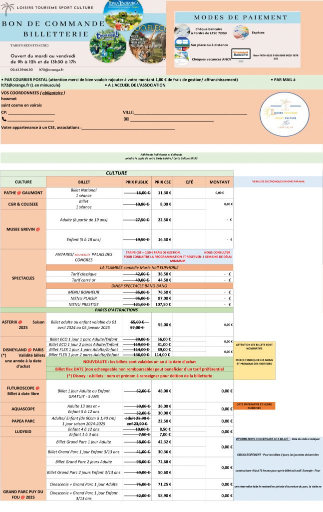 Notre partenaire Loisirs et tourisme sport culture (sarthe-mayenne) vous propose des tarifs très aventageux pour Disney Land paris : Billet CSE pour le parc Disneyland Paris 1 jour avec l’accès
